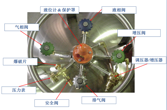 然后加入液氮后測重,一立升液氮重為0.8公斤加上空罐的重量得出滿罐時的重量,減去使用過后現有秤重,就是應補充的的容量。可以用專用的液位尺測液位,另一種簡便的方法是找一根干凈的木棒插入液氮內數秒鐘,將木棒迅速取出暴露在空氣中,插入液氮的部份因溫度低而結成白霜,很易容檢測罐內液氮的存量。